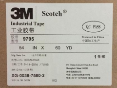 详细信息 3M9795规格:1372mmx55m 厚度:0.15MM 基材:PET 颜色:透明.3M9795特性:具有良好尺寸稳定性、热稳定性、化学稳定性,耐湿性、初粘性和持粘性好,易模切加工,耐温性好;长期耐温121℃,短期耐温可达149℃。能适用于更宽的温度范围和恶劣环境;离型纸为聚合物涂层防湿牛皮纸,在高湿度条件下也不会发生皱折。